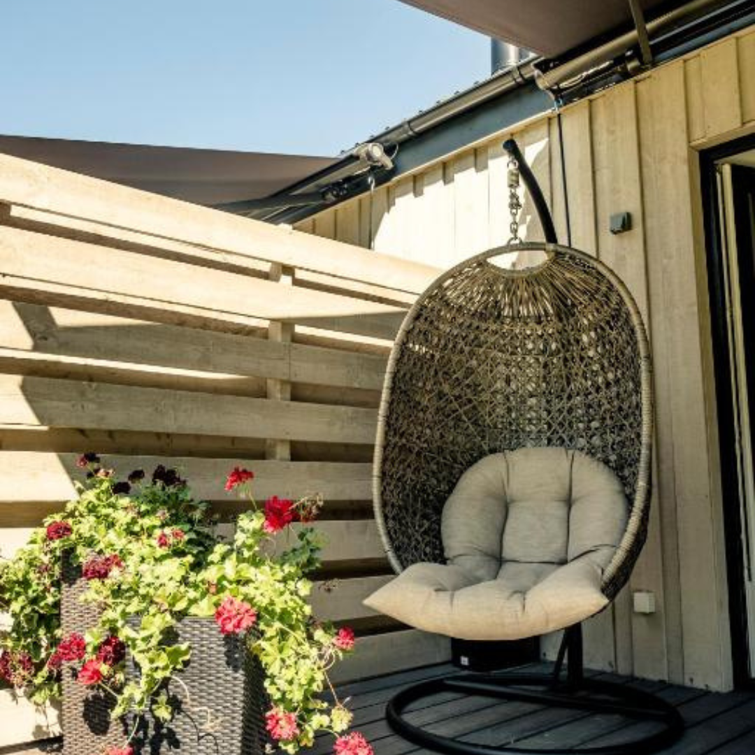 Prie jo priklauso erdvi, pilnai įrengta lauko terasa su patogiais baldais ir jaukus uždaras kiemas su žalia pieva – puiki vieta poilsiui ir vakariniams pasisėdėjimams.